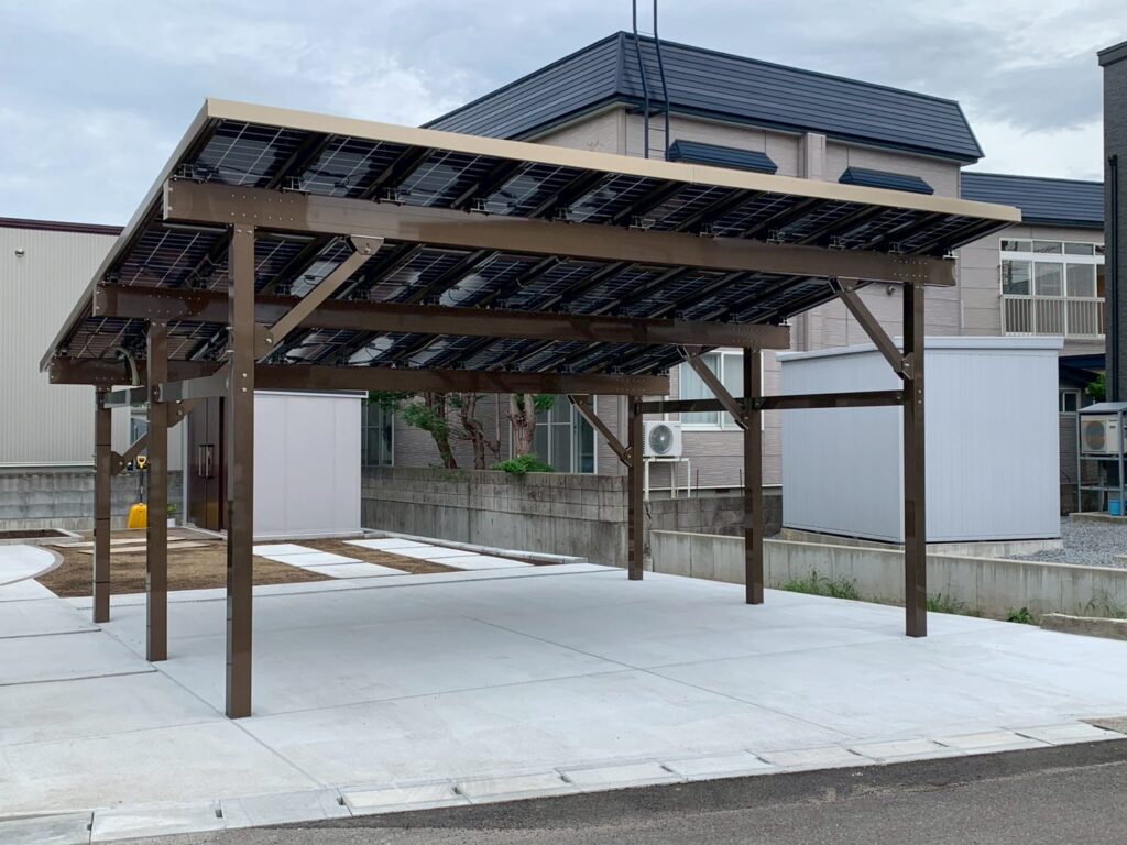 青森県青森市にソーラーカーポートYUKIJI(ユキジ)を設置しました。
