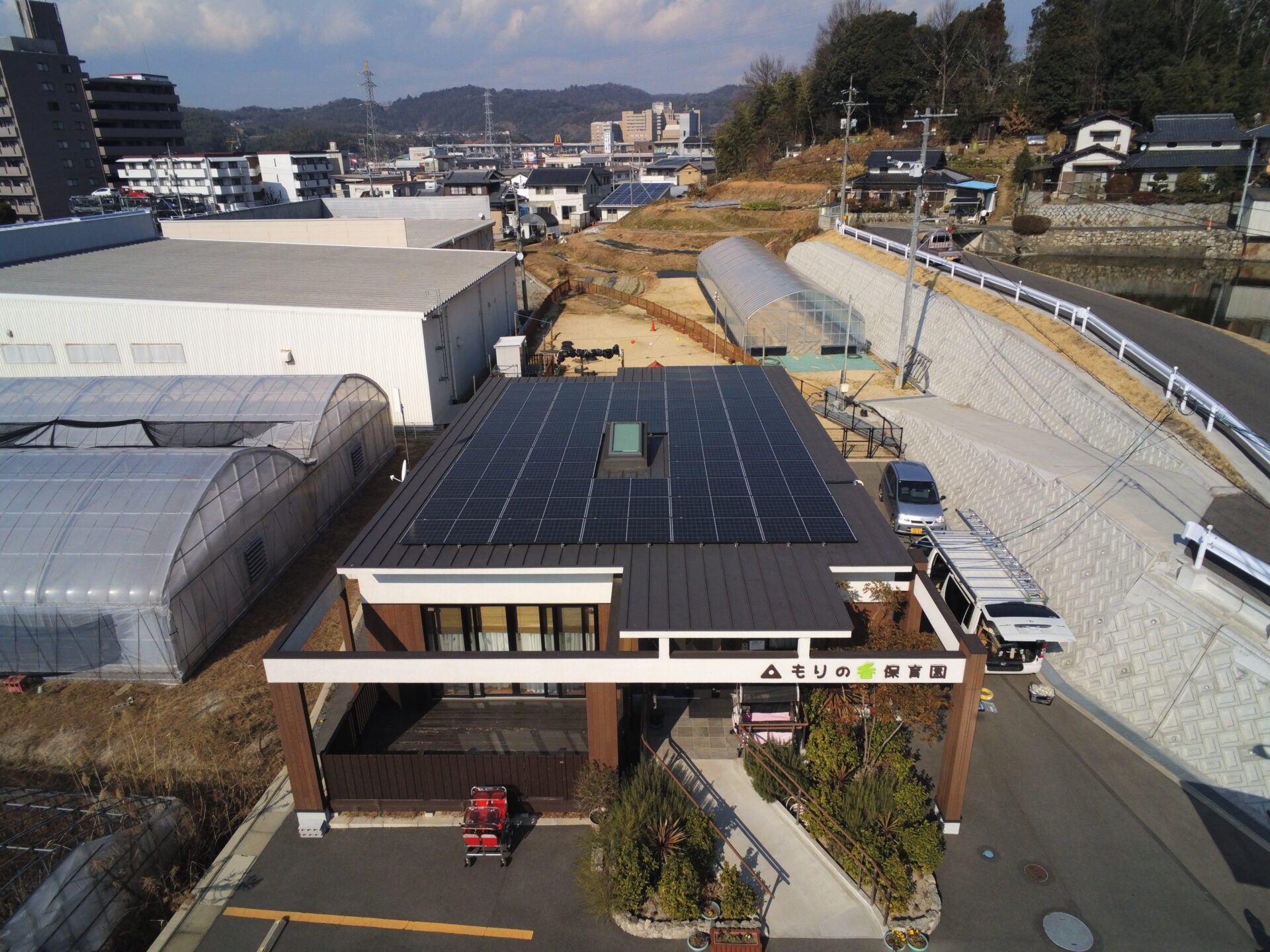 岡山市にある保育園「もりの香保育園」の屋根に太陽光パネルを設置しました。 AnafiThe・・・